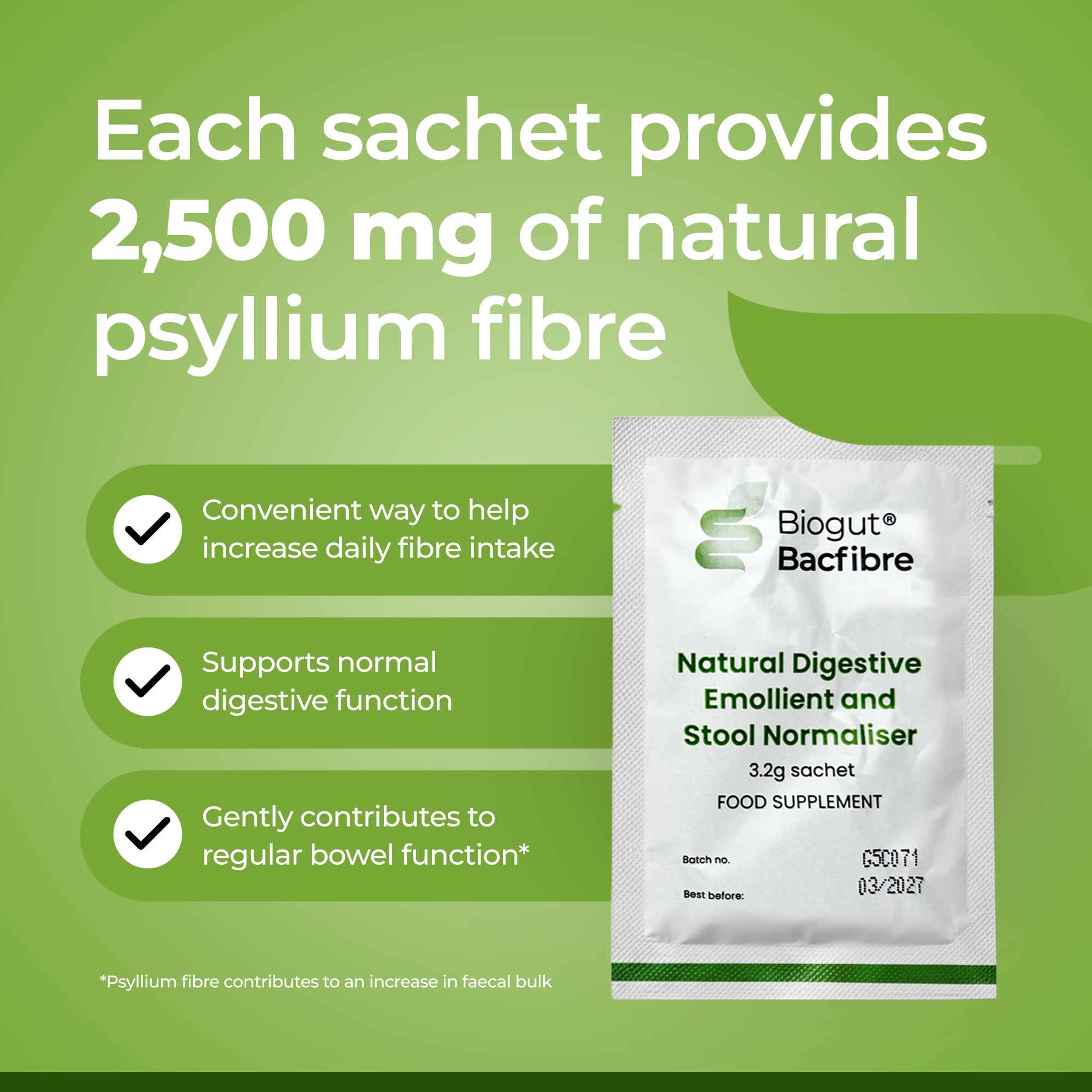 | Psyllium Fibre (2,500 mg per sachet) | ||||