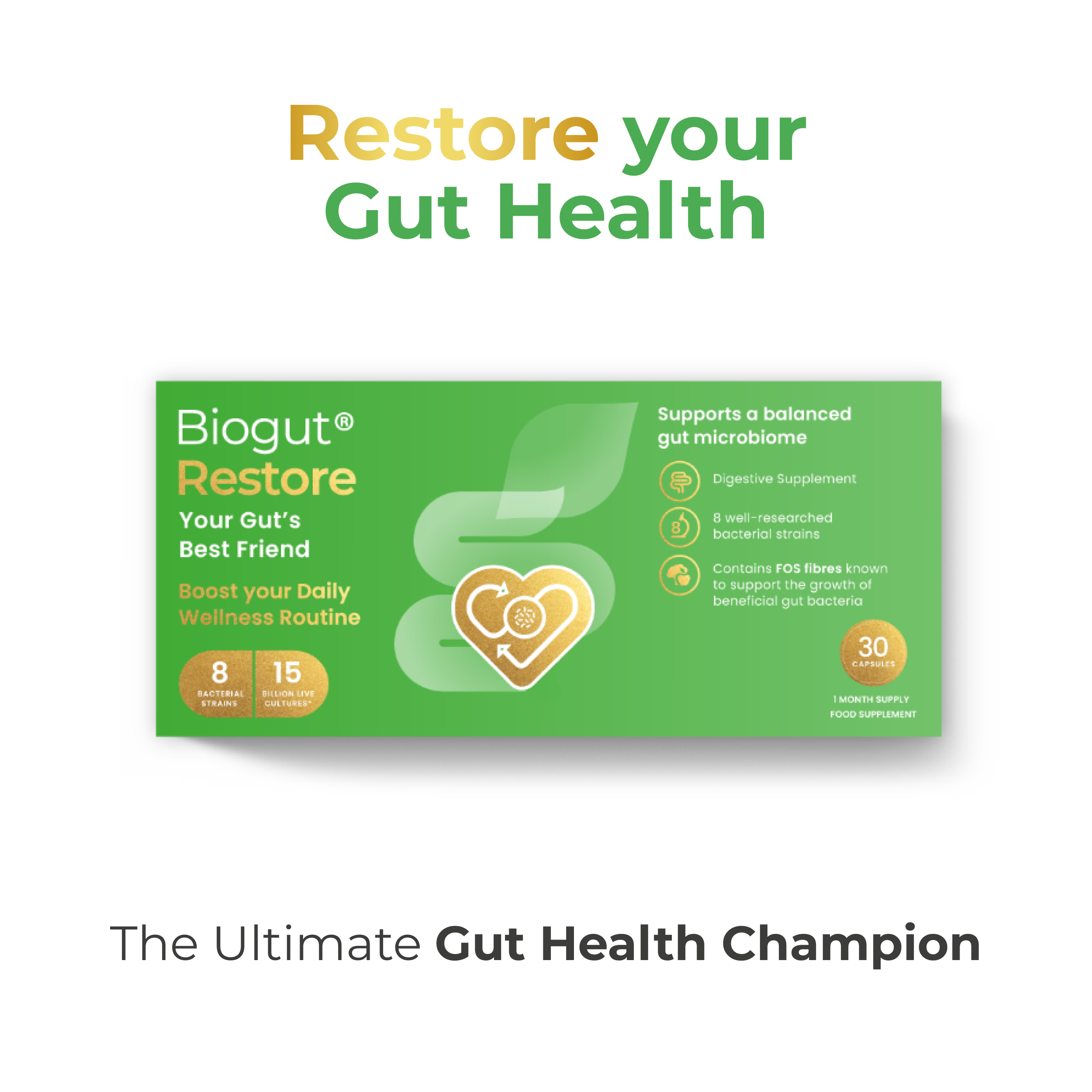 People across the UK are turning to Biogut Restore as a trusted gut health supplement to support their digestive health and immune health. It’s the perfect combination of 15 billion live cultures formulated to maintain a balanced gut microbiome. Not only does it promote healthy digestion, but it also supports immune function and daily wellness, giving you the foundation for long-term well-being.