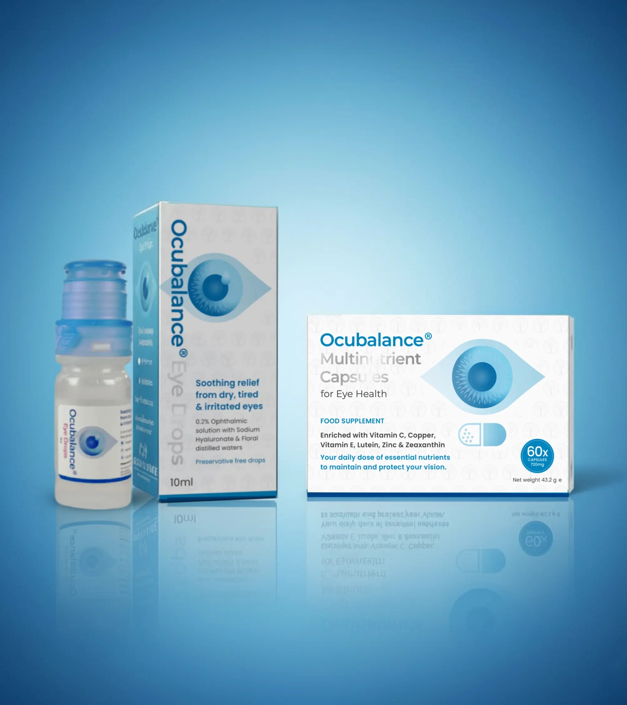 Ocubalance Eye Drops provide instant relief for tired eyes, while Ocubalance Capsules strengthen your defences against blue light exposure and age-related vision decline in the long term. Together, they offer the complete support needed to maintain healthy vision for years to come.