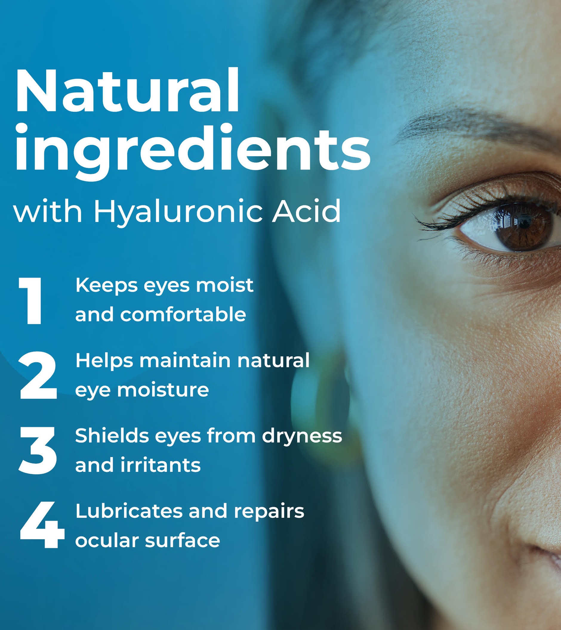 Gentle on the eyes, providing lasting hydration without harsh chemicals—can be directly used over contact lenses.